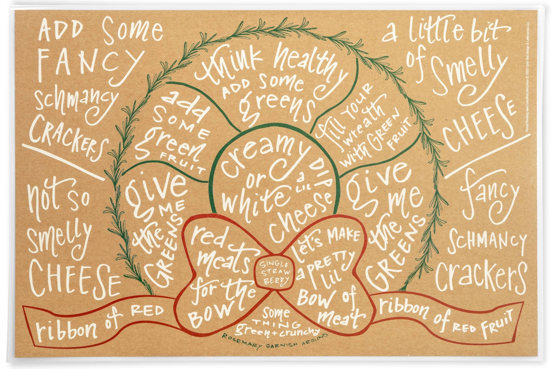 Our best-selling Charcuterie Cheat Sheets are the perfect guide designed to revolutionize your charcuterie board game, whether you're celebrating a graduation, hosting a holiday gathering, cheering on game day, or simply enjoying everyday snacking! Whether you're a seasoned entertainer or a novice host, our Charcuterie Cheat Sheets makes it easy to elevate your charcuterie game and create a lasting impression at your next special occasion or party. Simply follow the guide, mix and match your favorite cheeses, meats, fruits, nuts, and accompaniments, and watch as your charcuterie masterpiece comes to life!