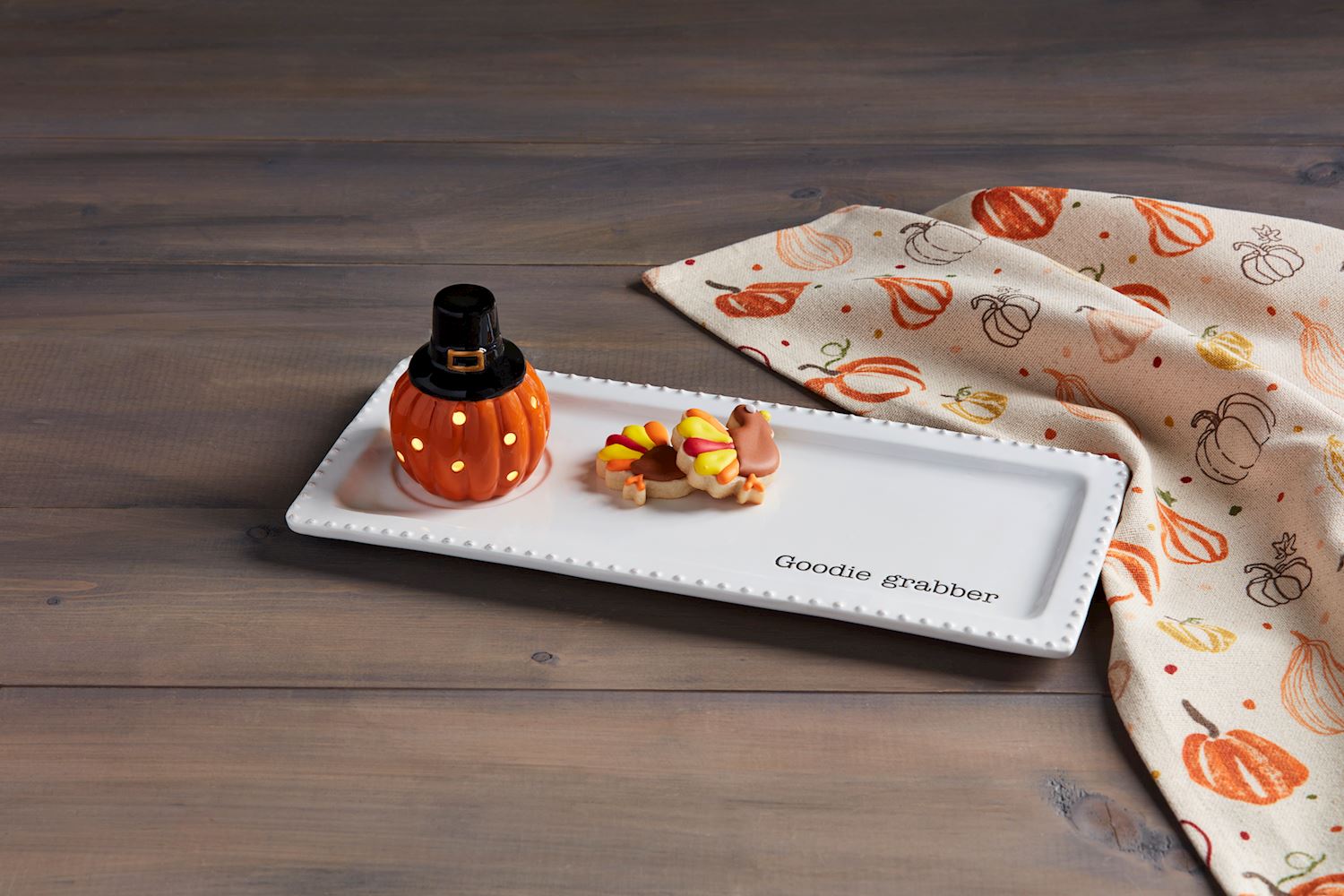The Pumpkin Pilgrim Light-Up Sitter is a charming and festive addition to your holiday decor. This hand-painted ceramic pumpkin showcases a delightful pilgrim hat, adding a touch of whimsy to any space. The pumpkin features LED light-up cut outs, creating a warm and inviting glow that will instantly enhance the ambiance of your home. With batteries included, you can easily display this adorable sitter anywhere you desire. Measuring 4 3/4" x 2 3/4" in diameter, this dolomite pumpkin is the perfect size to place on a mantel, shelf, or tabletop. Bring a touch of autumnal cheer to your home with the Pumpkin Pilgrim Light-Up Sitter.
